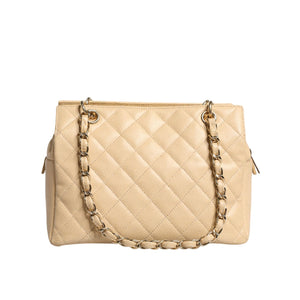 Chanel Beige Caviar De Coco Chain Leather Purse Bag
