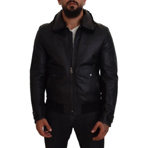 سترة دولتشي آند غابانا أنيقة من الجلد الأسود المبطن بالحرير