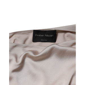Christian Pellizzari Beige One Shoulder Asymmetric Drape Dress