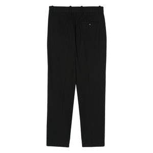 black stretch-cotton textured finish belt loops at the waist two side slash pockets pressed crease rear welt pocket tapered leg concealed front button, hook and zip fastening Oxford carrot fit trousers Size and Fit - This piece fits true to size. We recommend you get your regular size. Model is 1,75m / 5ft 8in wearing size 40 (IT)
