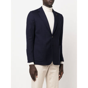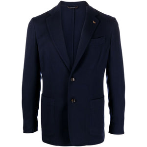 single-breasted wool blazer from COLOMBO featuring navy blue, wool, notched lapels, front button fastening, chest welt pocket, two front patch pockets, long sleeves, buttoned cuffs, English rear vents and straight hem. Wool single-breasted jacket Size and Fit - This piece fits true to size. We recommend you get your regular size. Model is 1,84m / 6ft 1in wearing size 48 (IT)