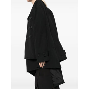 black wool double-breasted button fastening side slash pocket asymmetric sleeves Ulster lapels asymmetric hem Wool double-breasted coat