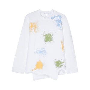 white/multicolour knitted construction spray-paint effect ribbed crew neck long sleeves asymmetric hem Printed asymmetric blouse Size and Fit - This piece fits true to size. We recommend you get your regular size. Model is 1,84m / 6ft 1in wearing size M