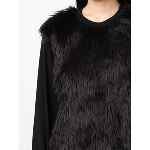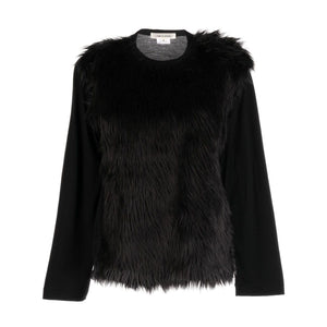 fur-detailing long-sleeve T-shirt from COMME DES GARÇONS featuring black, wool, faux-fur detailing, crew neck, long sleeves and straight hem. Faux-fux t-shirt Size and Fit - This piece fits true to size. We recommend you get your regular size. Model is 1,75m / 5ft 8in wearing size S