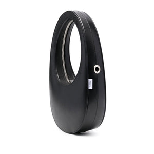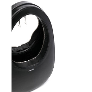 black calf leather silver-tone hardware logo stamp to the front top zip fastening main compartment single rounded top handle detachable shoulder strap Swipe mini leather shoulder bag Size and Fit - DEPTH: 6.0 Centimetres. HANDLE: 13.0 Centimetres. HEIGHT: 15.0 Centimetres. STRAP: 49.0 Centimetres. WIDTH: 16.0 Centimetres.