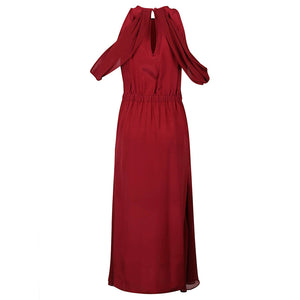 Red dress, elasticized in life, closure with button on the neck. Silk midi dress Size and Fit - This piece fits true to size. We recommend you get your regular size. Model is 1,75m / 5ft 8in wearing size 1 (NUM)