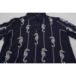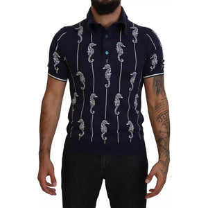 تي شيرت بولو من دولتشي آند غابانا بطبعة حصان البحر باللون الأزرق الداكن
