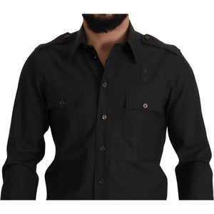 ادخل إلى عالم من الأناقة الخالدة مع قميص Dolce & Gabbana المصنوع من القطن الأصلي بنسبة 100%. تم تصميم هذا القميص باللون الأخضر الداكن الجديد مع الاهتمام الرائع بالتفاصيل، ويتميز بمقاس نحيف متطور ينضح بالرقي. ويكتمل خط العنق الكلاسيكي والأكمام الطويلة بزر تثبيت أنيق، مما يوفر قطعة متعددة الاستخدامات بقدر ما هي أنيقة. مزينة بتفاصيل شعار دقيقة لإضفاء لمسة من الفخامة، هذه التحفة الفنية المصنوعة في إيطاليا هي قطعة أساسية في خزانة ملابس أي رجل نبيل مميز.