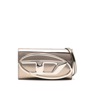 gold-tone calf leather patent finish metallic effect Oval D logo plaque foldover top adjustable detachable shoulder strap partitioned compartment internal zip-fastening pocket internal card slots internal slip pocket logo-jacquard lining tonal hardware concealed magnetic fastening This piece comes complete with a protective dust bag. 1DR wallet on chain Size and Fit - Width 7,87 in / 20 cm