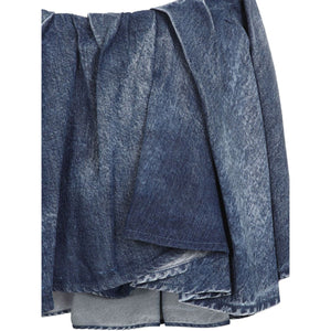 indigo blue elasticated waistband full skirt asymmetric hem Asymmetric mini skirt Size and Fit - This piece fits true to size. We recommend you get your regular size. Model is 1,75m / 5ft 8in wearing size S