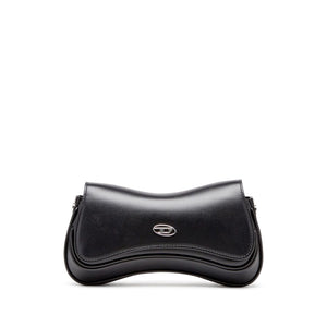 black calf leather smooth grain foldover top with magnetic fastening adjustable shoulder strap Oval D logo plaque silver-tone hardware main compartment internal logo patch internal zip-fastening pocket Play leather clutch Size and Fit - Width 10,24 in / 26 cm Height 5,12 in / 13 cm Depth 2,56 in / 6,5 cm Strap 8,27 in / 21 cm