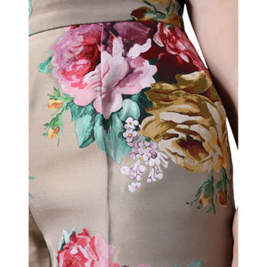 Dolce & Gabbana Beige Floral Jacquard High Waist Tapered Pants