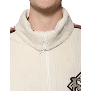 Dolce & Gabbana Beige Logo Applique Cotton Corduroy Full Zip Jacket