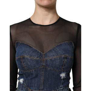 Dolce & Gabbana Black Blue Long Sleeves Denim Mini Dress