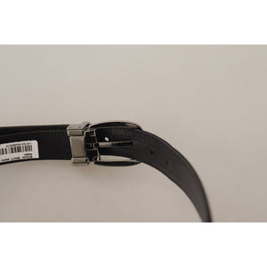 Dolce & Gabbana Black Calf Leather Silver Logo Metal Buckle Belt