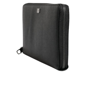 Dolce & Gabbana Black Calfskin Leather Logo Zip Around Continental Wallet