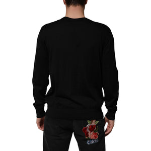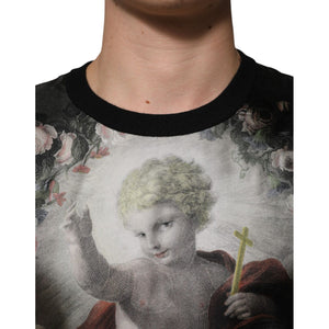 Dolce & Gabbana Black Cashmere Cherub Print Baroque Sweater