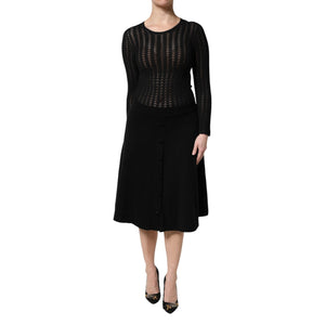 Dolce & Gabbana Black Cashmere Long Sleeves A-line Midi Dress