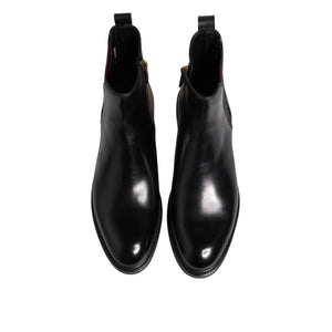 Dolce & Gabbana Black Chelsea Leather Mid Calf Boots Shoes