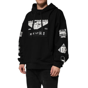 Dolce & Gabbana Black Cotton DG Milano Logo Print Hoodie Sweater