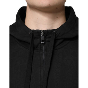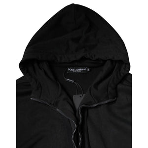 Dolce & Gabbana Black Cotton Full Zip Hooded Bomber Jacket