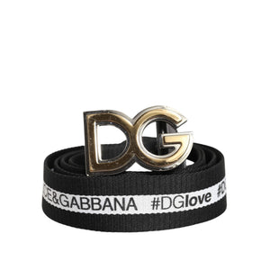 Dolce & Gabbana Black Cotton Gold Tone Metal DG Buckle Belt