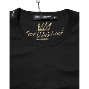 Dolce & Gabbana Black Cotton Goodluck Tee Crew Neck T-shirt
