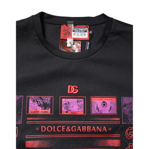 Dolce & Gabbana Black Cotton Graphic Print Crew Neck T-shirt