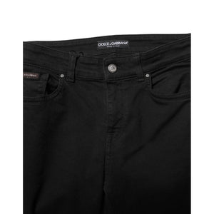Dolce & Gabbana Black Cotton Logo Skinny Mid Waist Denim Jeans