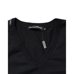 Dolce & Gabbana Black Cotton Plain V-Neck Men Shirt T-shirt