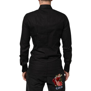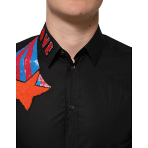 Dolce & Gabbana Black Cotton Star Sequin Dress Formal Men Shirt