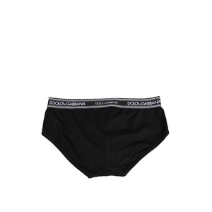Dolce & Gabbana Black Cotton Stretch Logo Print Brief Underwear