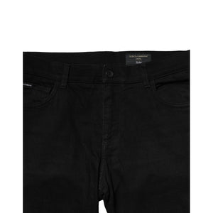 Dolce & Gabbana Black Cotton Tattered Slim Fit Men Denim Jeans