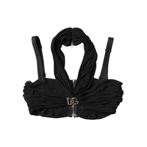 Dolce & Gabbana Black Cropped Viscose Halter Bustier Top
