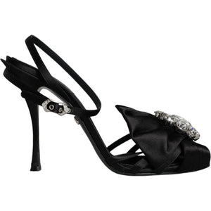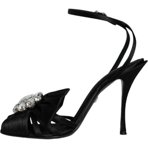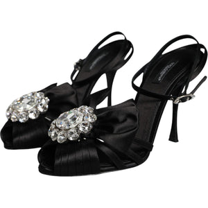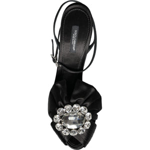 حذاء صندل من دولتشي آند غابانا بحزام للكاحل من الكريستال الأسود