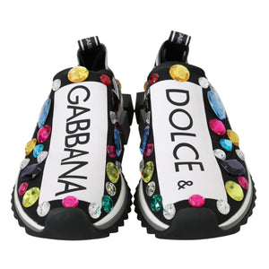 Dolce & Gabbana Black Multicolor Crystal Sneakers Shoes
