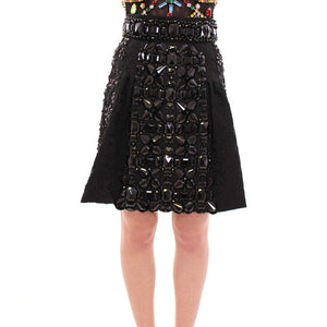 Dolce & Gabbana Black Crystal Handmade Above Knee Skirt