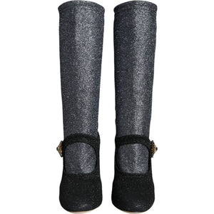 حذاء ماري جينس من دولتشي آند غابانا باللون الأسود الكريستالي