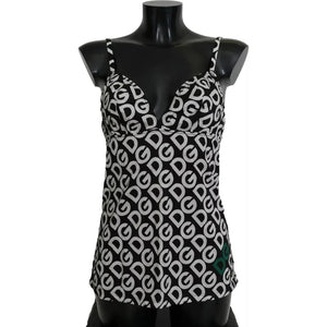 قطعة رائعة جديدة تمامًا مع العلامات التجارية، ملابس سباحة أصلية 100% من دولتشي آند غابانا، بلوزة بدون أكمام بطبعة DG Mania باللون الأسود