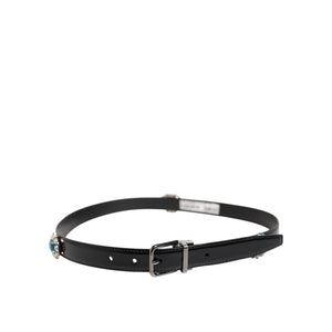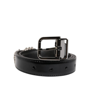 Dolce & Gabbana Black Embellished Metal Logo Buckle Belt