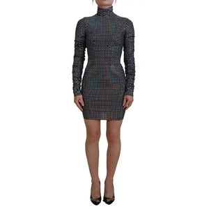 Dolce & Gabbana Black Embellished Nylon Bodycon Mini Dress