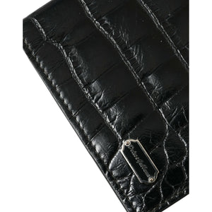 Dolce & Gabbana Black Exotic Skin Leather Long Bifold Passport Holder