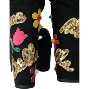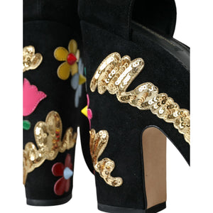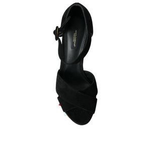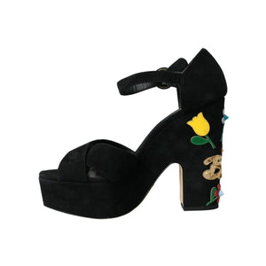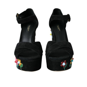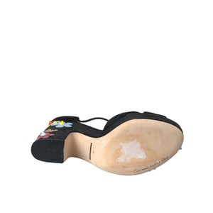 Dolce & Gabbana Black Floral Ankle Strap Heels Sandals Shoes
