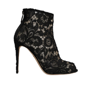Dolce & Gabbana Black Floral Lace Heels Ankle Boots Shoes