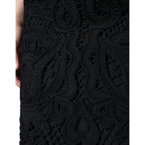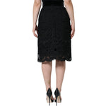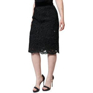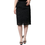 Dolce & Gabbana Black Floral Lace High Waist Pencil Cut Skirt