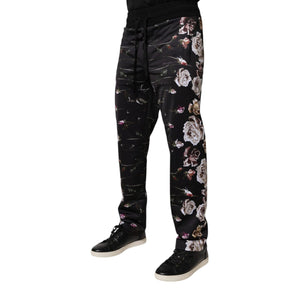 Dolce & Gabbana Black Floral Polyester Jogger Pants