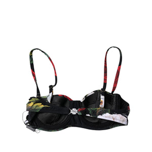 Dolce & Gabbana Black Floral Print Nylon Balconcino Bra Underwear