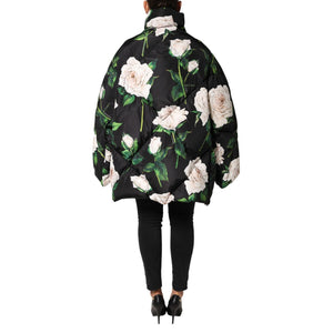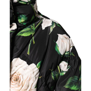 Dolce & Gabbana Black Floral Print Puffer Quilted Jacket