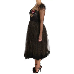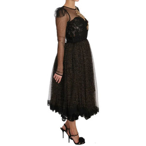 Dolce & Gabbana Black Gold Crystal Heart A-line Dress
