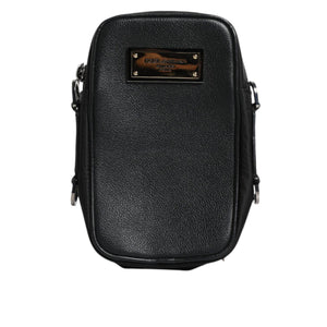 Dolce & Gabbana Black Grain Leather Logo Plaque Clutch Bag